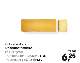 Cake van Klaas Roombotercake, Pak 800 gram, Ongesneden | 33012540