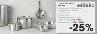 Ontdek de hoogwaardige Cater-Profi by HANOS pannen, gemaakt van roestvrij staal. Deze pannen zijn geschikt voor kookpannen, koekenpannen, steelpannen en sauteuses. Met diverse maten beschikbaar, vind je altijd de perfecte pan voor jouw keuken. De koekenpannen, steelpannen en sauteuses zijn verkrijgbaar vanaf 20,85 euro, terwijl de kookpannen beginnen bij 108,00 euro. Profiteer nu van een korting van 25% op geselecteerde pannen. Met Cater-Profi by HANOS ben je verzekerd van kwaliteit en duurzaamheid in de keuken. Upgrade je kookgerei met deze professionele pannen en geniet van het gemak en de prestaties die ze bieden. Bestel vandaag nog jouw Cater-Profi by HANOS pannen en maak koken een plezier!