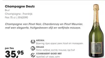 HANOS biedt naast de Champagne Deutz een ruime collectie producten aan. Houd de wekelijkse HANOS folder in de gaten om de beste aanbiedingen en acties te vinden. Naast Champagne Deutz, kunt u ook de volgende aanbiedingen vinden: Dericbourg Champagne Brut, Kledingkast Aurie B261xH210 Champagne & Pommery Champagne Brut Royal.