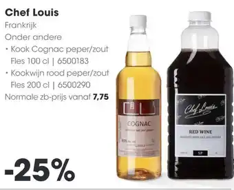 Chef Louis biedt hoogwaardige kookwijn en Cognac peper/zout uit Frankrijk aan. De fles van 200 cl bevat een mix van rode wijn, peper en zout, perfect voor het verrijken van je gerechten. De kookwijn is speciaal gemodificeerd met zout en peper voor een unieke smaakbeleving. Normaal gesproken kost deze fles 7,75 euro, maar nu profiteer je van een korting van 25%. Geniet van de heerlijke smaken van Chef Louis en geef je gerechten een Franse touch. Met de kookwijn en Cognac peper/zout van Chef Louis breng je jouw culinaire creaties naar een hoger niveau. Bestel nu en ontdek de smaakvolle toevoeging van deze producten aan je keukenrepertoire.