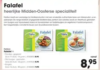 HANOS biedt naast de Falafun Falafel een ruime collectie producten aan. Houd de wekelijkse HANOS folder in de gaten om de beste aanbiedingen en acties te vinden. Naast Falafun Falafel, kunt u ook de volgende aanbiedingen vinden: Falafel Salade 350g, Garden Gourmet Falafel classic & Garden Gourmet Falafel spicy.
