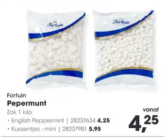 Geniet van de verfrissende smaak van Fortuin Pepermunt in een handige zak van 1 kilo. Deze klassieke pepermuntjes zijn perfect voor thuis, op het werk of onderweg. De pepermuntjes hebben een heerlijke Engelse muntsmaak en zijn verkrijgbaar voor een voordelige prijs vanaf 4,25 euro. Met de zak van 1 kilo heb je altijd voldoende pepermuntjes bij de hand om te delen met vrienden en familie. Ook leuk om uit te delen op feestjes of als bedankje. Bestel nu de Fortuin Pepermunt Zak 1 kilo en geniet van de heerlijke verfrissing die deze klassieke pepermuntjes bieden.