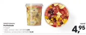 De prijs van de Fruitsalade kan ook teruggevonden worden hierboven op de pagina, samen met de datum van wanneer de aanbieding beschikbaar is. Ook kun je de prijzen in de huidige HANOS folder of op de HANOS website controleren. De aanbiedingen verzekeren je van het kopen van de HANOS producten voor de laagste prijs.