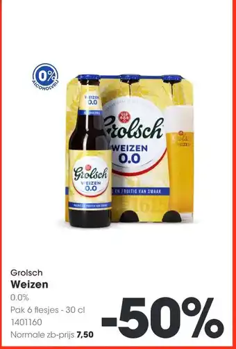 Geniet van de verfrissende smaak van Grolsch Weizen 0.0%, een alcoholvrij bier met een fruitige twist. Dit pak bevat 6 flesjes van 30 cl, perfect om te delen met vrienden of om zelf van te genieten. Grolsch Weizen 0.0% is gebrouwen volgens het traditionele recept van Grolsch uit 1615, maar dan zonder alcohol. Met zijn zachte en fruitige smaak is dit bier een heerlijke dorstlesser voor elk moment. Normaal kost dit pak 7,50, maar nu krijg je 50% korting. Profiteer snel van deze aanbieding en ontdek de smaakvolle wereld van Grolsch Weizen 0.0%.