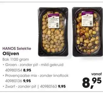 De Hanos selektie olijven is momenteel met korting verkrijgbaar bij HANOS. Hier vind je alle details over prijs, geldigheidsduur en actievoorwaarden. Vergeet niet om ook andere aanbiedingen en deals voor Hanos selektie olijven te bekijken zodat je zeker weet dat je de beste prijs betaalt. De kortingsactie loopt van 09-03-2026 tot 22-03-2026. Is de actie inmiddels verlopen? Geen zorgen, vergelijk dan soortgelijke aanbiedingen of volg de productcategorie voor toekomstige prijsverlagingen. Zo koop je altijd met voordeel.Veelgestelde vragen over Hanos selektie olijven