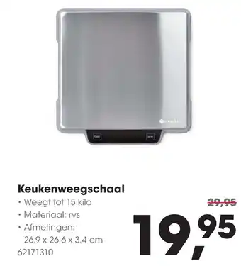 HANOS biedt naast de Keukenweegschaal een ruime collectie producten aan. Houd de wekelijkse HANOS folder in de gaten om de beste aanbiedingen en acties te vinden. Naast Keukenweegschaal, kunt u ook de volgende aanbiedingen vinden: Soehne keukenweegschaal, Princess 492944 Keukenweegschaal & Aeno Aks0001s Keukenweegschaal Wit.
