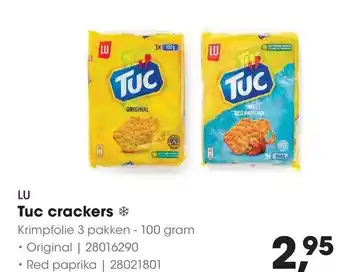 HANOS biedt naast de Lu Tuc crackers een ruime collectie producten aan. Houd de wekelijkse HANOS folder in de gaten om de beste aanbiedingen en acties te vinden. Naast Lu Tuc crackers, kunt u ook de volgende aanbiedingen vinden: LU TUC Crackers Paprika 100g 2x, Lu Tuc Crackers en bakerolls & LU TUC Crackers Original 100g 2x.