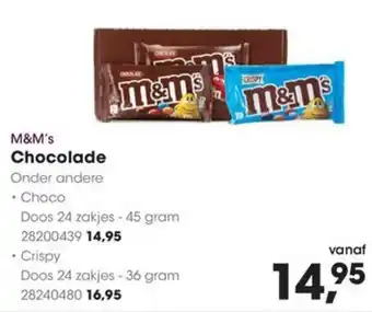 HANOS biedt naast de M&M's Chocolade een ruime collectie producten aan. Houd de wekelijkse HANOS folder in de gaten om de beste aanbiedingen en acties te vinden. Naast M&M's Chocolade, kunt u ook de volgende aanbiedingen vinden: M&M's Chocolade, M&M'S Pinda melk chocolade maxi & M&M'S Gezouten karamel melk chocolade maxi.