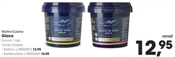 Maître Cuisine Glace de Veau is een krachtige basis voor diverse gerechten, vers bereid en verpakt in een handige emmer van 1 kilo. Deze glace is gemaakt van kalfsbouillon en zorgt voor een intense smaakbeleving in jouw gerechten. De Maître Cuisine Glace de Veau is onder andere te gebruiken als basis voor sauzen, soepen en stoofschotels. Met deze glace geef je jouw gerechten een authentieke en rijke smaak. De Maître Cuisine Glace de Veau is verkrijgbaar vanaf 12,95 en is een onmisbaar product voor elke thuiskok of professional in de keuken. Probeer het nu en ontdek de heerlijke smaak van deze kalfsbouillon glace!