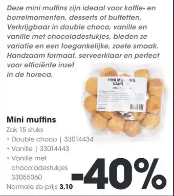 HANOS biedt naast de Mini muffins een ruime collectie producten aan. Houd de wekelijkse HANOS folder in de gaten om de beste aanbiedingen en acties te vinden. Naast Mini muffins, kunt u ook de volgende aanbiedingen vinden: Trader Joe's Mini Muffins, MUFFINS & Muffins.