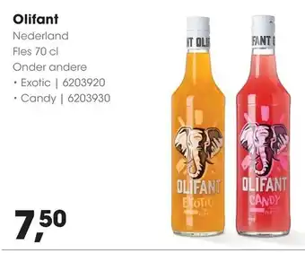 De OLIFANT EXOTIC is een heerlijke Nederlandse likeur in een fles van 70 cl. Deze likeur bevat onder andere exotische ingrediënten die zorgen voor een unieke smaakbeleving. Met een alcoholpercentage van 7,50% is deze OLIFANT likeur perfect om puur te drinken of te mixen in cocktails. De OLIFANT EXOTIC heeft een zoete en fruitige smaak die doet denken aan exotische vruchten. Geniet van de verfrissende en exotische smaak van deze OLIFANT likeur, die ook wel bekend staat als IT OLI FANT. Probeer ook eens de OLIFANT CANDY variant voor een zoetere smaakbeleving. Bestel nu jouw fles OLIFANT EXOTIC 70 cl en laat je verrassen door de heerlijke smaak van deze Nederlandse likeur.