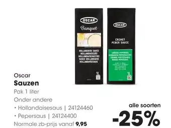HANOS biedt naast de Oscar Sauzen een ruime collectie producten aan. Houd de wekelijkse HANOS folder in de gaten om de beste aanbiedingen en acties te vinden. Naast Oscar Sauzen, kunt u ook de volgende aanbiedingen vinden: Oscar De La Renta Oscar Eau de Toilette, Calvé Sauzen & Zaanse Sauzen.