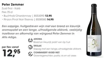Een sappige, fruitgedreven wijn met een breed en kleurrijk aromapalet en een lange, uitnodigende afdronk, veelzijdig inzetbaar en afkomstig van wijngoed Peter Zemmer in Alto Adige. Deze wijn is verkrijgbaar per fles vanaf 12,95 en is beschikbaar in twee varianten: Buchholz Chardonnay en Pinzon Pinot Noir Riserva. De Buchholz Chardonnay heeft een breed en kleurrijk palet van rijp fruit, terwijl de Pinzon Pinot Noir Riserva sappig is met een lange, uitnodigende afdronk. Beide wijnen combineren goed met groentegerechten, pasta, vis en wit vlees. Geniet van de smaak van Zuid-Tirol in Italië met de heerlijke wijnen van Peter Zemmer.
