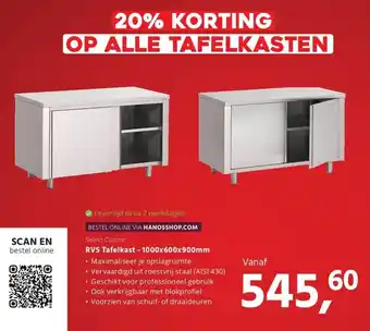 De prijs van de RVS Tafelkast - 1000x600x900mm kan ook teruggevonden worden hierboven op de pagina, samen met de datum van wanneer de aanbieding beschikbaar is. Ook kun je de prijzen in de huidige HANOS folder of op de HANOS website controleren. De aanbiedingen verzekeren je van het kopen van de HANOS producten voor de laagste prijs.