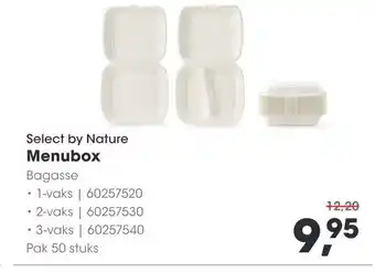 HANOS biedt naast de Select by Nature Menubox een ruime collectie producten aan. Houd de wekelijkse HANOS folder in de gaten om de beste aanbiedingen en acties te vinden. Naast Select by Nature Menubox, kunt u ook de volgende aanbiedingen vinden: Select by Nature Lunchbox, Select by Nature Snackbakjes & Select by Nature Dispensers.