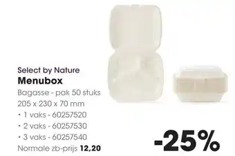 HANOS biedt naast de Select by Nature Menubox een ruime collectie producten aan. Houd de wekelijkse HANOS folder in de gaten om de beste aanbiedingen en acties te vinden. Naast Select by Nature Menubox, kunt u ook de volgende aanbiedingen vinden: Select by Nature Lunchbox, Select by Nature Hamburgerbox & Select Select by Nature Vetvrij papier.