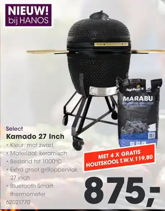 De prijs van de Select Kamado 27 Inch kan ook teruggevonden worden hierboven op de pagina, samen met de datum van wanneer de aanbieding beschikbaar is. Ook kun je de prijzen in de huidige HANOS folder of op de HANOS website controleren. De aanbiedingen verzekeren je van het kopen van de HANOS producten voor de laagste prijs.
