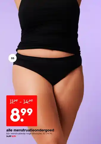 bijv. menstruatieslip hoge absorptie, xs t/m xl