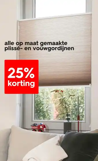 25% korting op alle op maat gemaakte plissé- en vouwgordijnen