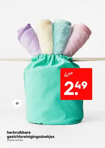 Deze herbruikbare gezichtsreinigingsdoekjes zijn een duurzaam alternatief voor wegwerpdoekjes. Met een pakket van 57 doekjes in diverse soorten, heb je altijd een schone doek bij de hand. De doekjes zijn gemaakt van zacht materiaal dat geschikt is voor alle huidtypes. Door de herbruikbare eigenschap bespaar je niet alleen geld, maar ook het milieu. De doekjes zijn eenvoudig te reinigen in de wasmachine en gaan lang mee. Bestel nu jouw set van herbruikbare gezichtsreinigingsdoekjes voor slechts €4.00 in plaats van €2.49. Zo geef je jouw huid de verzorging die het verdient, op een milieuvriendelijke manier.