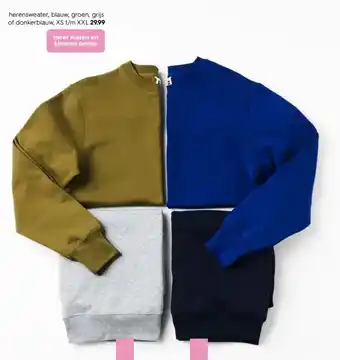 Heren sweater in blauw, groen, grijs of donkerblauw van XS t/m XXL 29.99