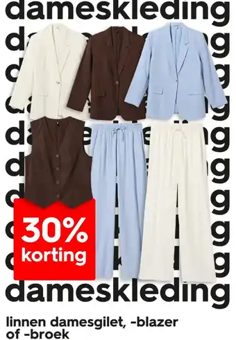 Linnen damesgilet, -blazer of -broek met 30% korting