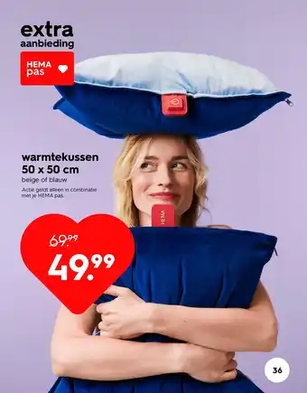 Extra aanbieding: Warmtekussen 50 x 50 cm beige of blauw voor 49.99 met HEMA pas