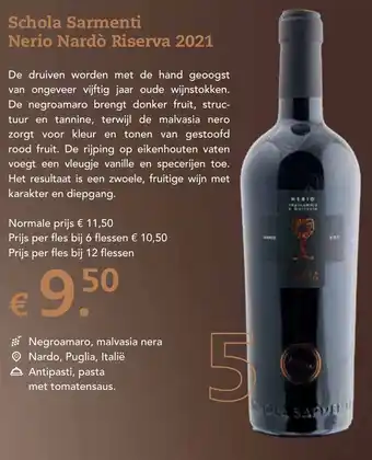 Nu in de aanbieding bij Henri Bloem: Schola Sarmenti Nerio Nardò Riserva 2021✅ Actie geldig van 1-01 t/m 31-01.