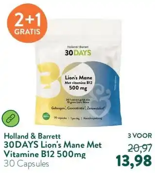 Nu in de aanbieding bij Holland & Barrett: 30DAYS Lion's Mane Met Vitamine B12 500mg✅ Actie geldig van 20-04 t/m 26-04.