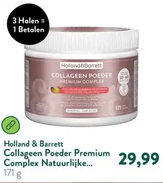 De prijs van de Collageen Poeder Premium Complex Natuurlijke Aardbei-/Limoensmaak - 171 gram kan ook teruggevonden worden hierboven op de pagina, samen met de datum van wanneer de aanbieding beschikbaar is. Ook kun je de prijzen in de huidige Holland & Barrett folder of op de Holland & Barrett website controleren. De aanbiedingen verzekeren je van het kopen van de Holland & Barrett producten voor de laagste prijs.