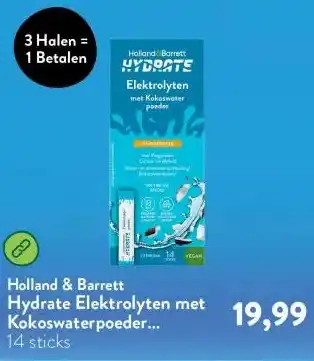 De prijs van de Hydrate Elektrolyten met Kokoswaterpoeder Ananassmaak - 14 sticks kan ook teruggevonden worden hierboven op de pagina, samen met de datum van wanneer de aanbieding beschikbaar is. Ook kun je de prijzen in de huidige Holland & Barrett folder of op de Holland & Barrett website controleren. De aanbiedingen verzekeren je van het kopen van de Holland & Barrett producten voor de laagste prijs.