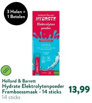 Hydrate Elektrolytenpoeder Framboossmaak - 14 sticks aanbieding bij Holland & Barrett – binnenkort verwacht