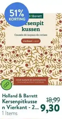 De prijs van de Kersenpitkussen Vierkant - 27 x 27cm kan ook teruggevonden worden hierboven op de pagina, samen met de datum van wanneer de aanbieding beschikbaar is. Ook kun je de prijzen in de huidige Holland & Barrett folder of op de Holland & Barrett website controleren. De aanbiedingen verzekeren je van het kopen van de Holland & Barrett producten voor de laagste prijs.