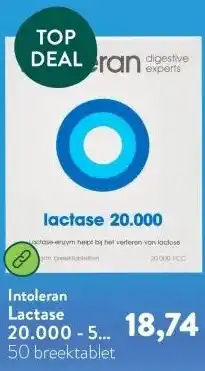 De aanbieding is verkrijgbaar in verschillende winkels, bekijk alle producten om de goedkoopste Lactase 20.000 - 50 breektabletten te krijgen. Als je graag wilt kijken of het artikel met meer korting te koop is in een andere winkel, bekijk de categorie 'Drogist en Parfumerie'. Wellicht vind je deze aanbiedingen ook interessant: Intoleran Lactase 20.000 - 50 breektabletten, Care Lactase 45mg & Aov 1132 lactase vegacaps 60vcp.