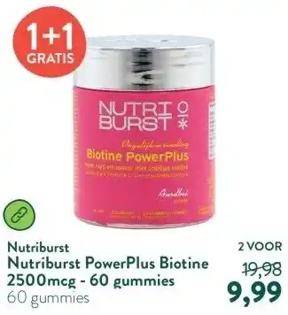 De Nutriburst PowerPlus Biotine 2500mcg - 60 gummies is momenteel met korting verkrijgbaar bij Holland & Barrett. Hier vind je alle details over prijs, geldigheidsduur en actievoorwaarden. Vergeet niet om ook andere aanbiedingen en deals voor Nutriburst PowerPlus Biotine 2500mcg - 60 gummies te bekijken zodat je zeker weet dat je de beste prijs betaalt. De kortingsactie loopt van 16-02-2026 tot 22-02-2026. Is de actie inmiddels verlopen? Geen zorgen, vergelijk dan soortgelijke aanbiedingen of volg de productcategorie voor toekomstige prijsverlagingen. Zo koop je altijd met voordeel.Veelgestelde vragen over Nutriburst PowerPlus Biotine 2500mcg - 60 gummies