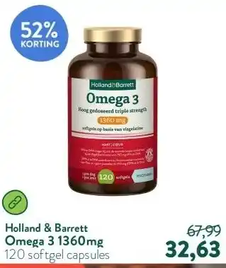 De prijs van de Omega 3 1360mg kan ook teruggevonden worden hierboven op de pagina, samen met de datum van wanneer de aanbieding beschikbaar is. Ook kun je de prijzen in de huidige Holland & Barrett folder of op de Holland & Barrett website controleren. De aanbiedingen verzekeren je van het kopen van de Holland & Barrett producten voor de laagste prijs.
