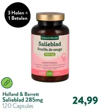 Nu in de aanbieding bij Holland & Barrett: Salieblad 285mg✅ Actie geldig van 27-04 t/m 3-05.