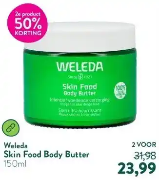 De aanbieding is verkrijgbaar in verschillende winkels, bekijk alle producten om de goedkoopste Skin Food Body Butter te krijgen. Als je graag wilt kijken of het artikel met meer korting te koop is in een andere winkel, bekijk de categorie 'Drogist en Parfumerie'. Wellicht vind je deze aanbiedingen ook interessant: SKIN FOOD BODY BUTTER, Weleda Skin Food Body Butter & Weleda Skin Food Body Butter - 150ml.