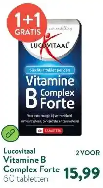 De aanbieding is verkrijgbaar in verschillende winkels, bekijk alle producten om de goedkoopste Vitamine B Complex Forte te krijgen. Als je graag wilt kijken of het artikel met meer korting te koop is in een andere winkel, bekijk de categorie 'Drogist en Parfumerie'. Wellicht vind je deze aanbiedingen ook interessant: 2+2 gratis: Lucovitaal Vitamine B Complex Forte, Davitamon Vitamine B complex forte tabletten & Lucovitaal vitamine b complex forte tabletten 60tb.