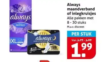 Always maandverband of inlegkruisjes aanbieding en online acties bij Hoogvliet