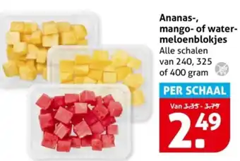 Ananas, mango of water meloenblokjes aanbieding bij Hoogvliet
