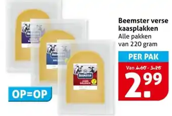 Beemster verse kaasplakken 220 gram per pak voor 2.99
