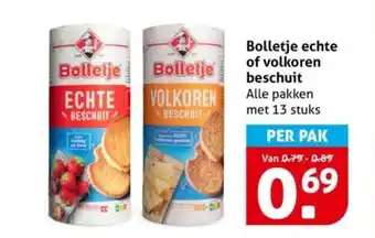 Bolletje echte of volkoren beschuit aanbieding en online acties bij Hoogvliet