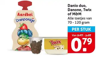 De aanbieding is verkrijgbaar in verschillende winkels, bekijk alle producten om de goedkoopste Danio duo, Danone, Twix of M&M te krijgen. Als je graag wilt kijken of het artikel met meer korting te koop is in een andere winkel, bekijk de categorie 'Supermarkt'. Wellicht vind je deze aanbiedingen ook interessant: Twix & M&M's Yoghurt , of Alpro Coco- nut Desserts, Twix & M&M's Yoghurt , of Alpro Coco- nut Desserts & Danio.
