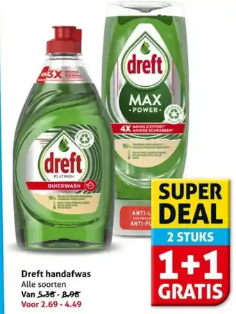 Hoogvliet biedt naast de Dreft handafwas een ruime collectie producten aan. Houd de wekelijkse Hoogvliet folder in de gaten om de beste aanbiedingen en acties te vinden. Naast Dreft handafwas, kunt u ook de volgende aanbiedingen vinden: Dreft Handafwas 3-in-1 spray, Dreft handafwas of vaatwas & Dreft Handafwasmiddel professioneel.