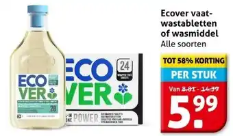 Ecover vaat- wastabletten of wasmiddel aanbieding en online acties bij Hoogvliet