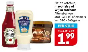 Heinz ketchup, mayonaise of Wijko satésaus aanbieding bij Hoogvliet