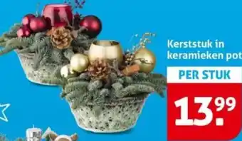 Kerststuk in keramieken pot korting bij Hoogvliet