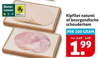 Beter Leven Kipfilet naturel of bourgondische schouderham PER 100 GRAM 1.99
