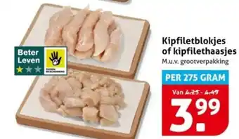 Kipfiletblokjes of kipfilethaasjes aanbieding bij Hoogvliet